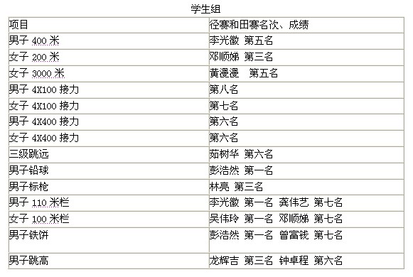 2011年11月25日,一年一度的校运会如期而至。信息工程学院作为一股新生力量,第一次登上了校运会的舞台,并为本届校运会上画上了浓墨重彩的一笔。 在本次运动会中,我院师生积极参与,努力拼搏,不断创造奇迹。挥洒的汗水、高涨的热情、坚定的步伐、胜利的笑容展示出我院运动员斗志昂扬的精神面貌。经过一次次激动人心的呐喊和冲刺,信息工程学院师生多次榜上有名,其中09级信管16班彭浩然同学包揽了男子铅球及男子铁饼冠军,铅球项目更是以11.21米的佳绩再次打破了他自己所创下的校运会记录。此外,李光徽与吴伟玲同学分别夺得男子110米栏和女子100米栏冠军,龙辉吉、林亮等同学也取得了骄人的成绩。教工运动员也不甘示弱,学院党总支张静副书记连续五年蝉联女子立定跳远冠军,张位全老师也获得了教工800米项目第一名,其他老师也在运动会的单项比赛中取得了不错的成绩。我院全体师生所共同创造的奇迹,是我们努力的结果。它不仅为我们带来了荣誉,更使每位运动员在比赛中学会了团结合作,学会了服务他人,更增强了集体荣誉感,增强了学院的凝聚力。 校运会使学院师生齐聚一堂,谱写着信息工程学院的拼搏进取之歌,团结协作之歌和奉献扶持之歌。坚定的眼神、必胜的信念、拼搏的精神展示了我院运动健儿的青春风采,体现了我院师生朝气蓬勃、积极进取的精神面貌。此届校运会的成功举办将有力提升全校师生的身体素质,培养顽强的拼搏精神,使同学们以一种自强不息、拼搏进取的姿态投入到以后的学习生活中,不断完善自我,超越自我。(文/陈武熊 图/学生会信技部 编辑/刘翅 韩成虎)